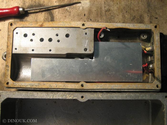 I started by opening and emptying the old Dinoplex system and making up an aluminium plate to fit inside the unit which is used to fix the individual Bosch components to. This done it was just a case of wiring everything up following the diagram Adrian supplied and fixing the components onto the plate. Everything was then plugged into the